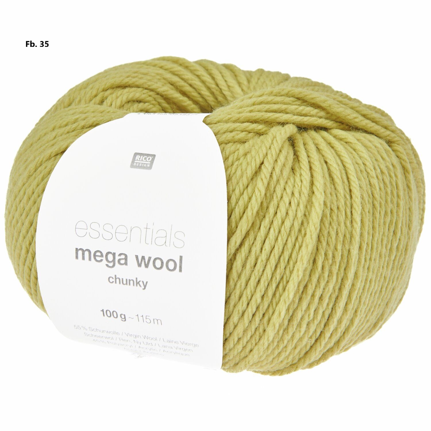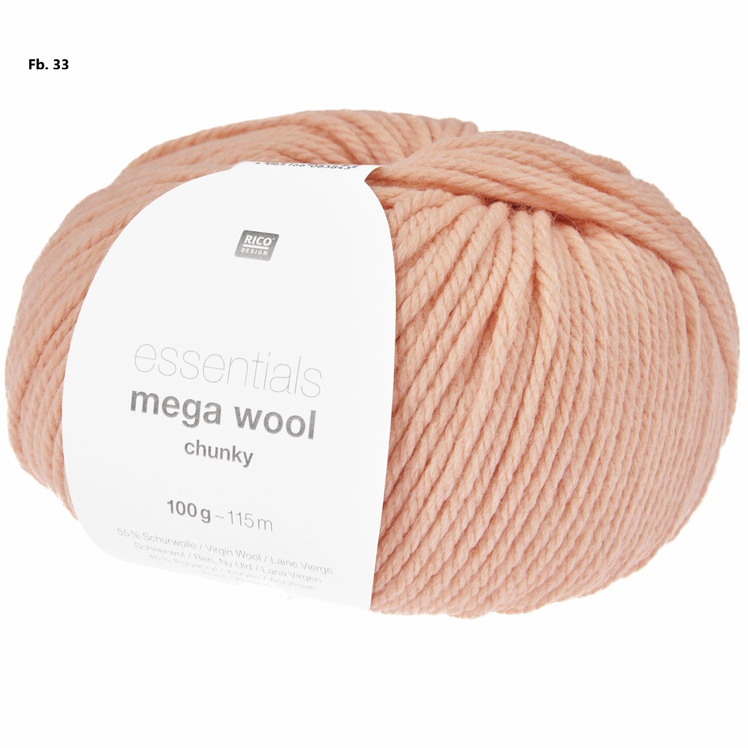 Rico Design Essentials Mega Merino / Wool chunky ist eine hochwertige Schurwollmischung in mittlerer Nadelstärke. Der weiche Faden ergibt ein schönes Maschenbild. Stricken Sie aus dieser Qualität zum Beispiel einen Pullover oder schöne Accessoires in Ihrer Lieblingsfarbe!