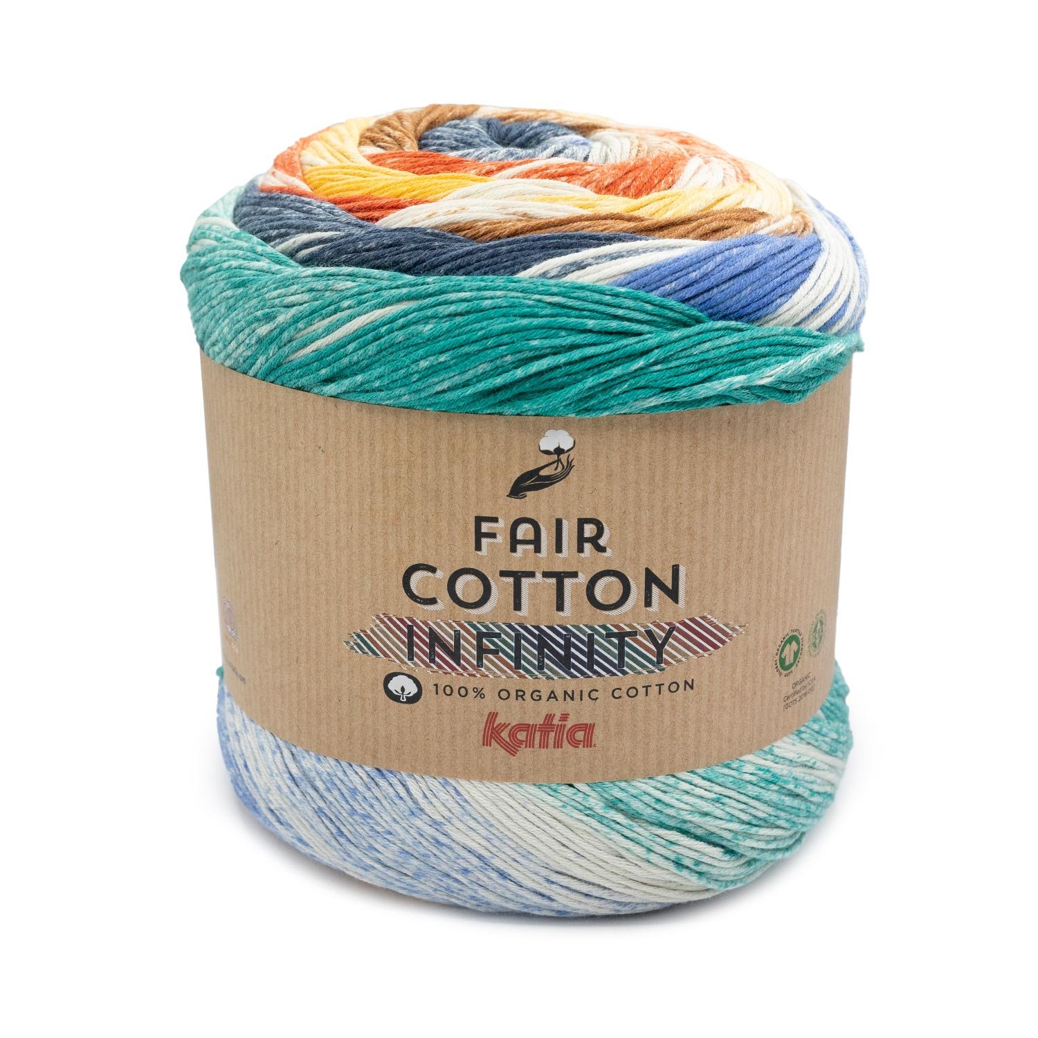Entdecke die neueste Ergänzung zur Fair Cotton-Familie: Katia Fair Cotton Infinity. Mit dem erstaunlichen Konzept des perfekten Farbverlaufs dieses Garns erzielst du eine wunderschöne Farbharmonie in deinen Strickprojekten. Seine perfekte Symmetrie und Farbreihenfolge erzeugen einen spektakulären Spiegeleffekt im Gewebe. Setze auf Qualität und Ergiebigkeit dieses einzigartigen Garns! Stricke ein Tuch mit nur einem Knäuel und lasse dich von dieser Baumwolle überraschen. Entdecke Katia Fair Cotton Infinity und kreiere deine eigenen handgestrickten Wunder!