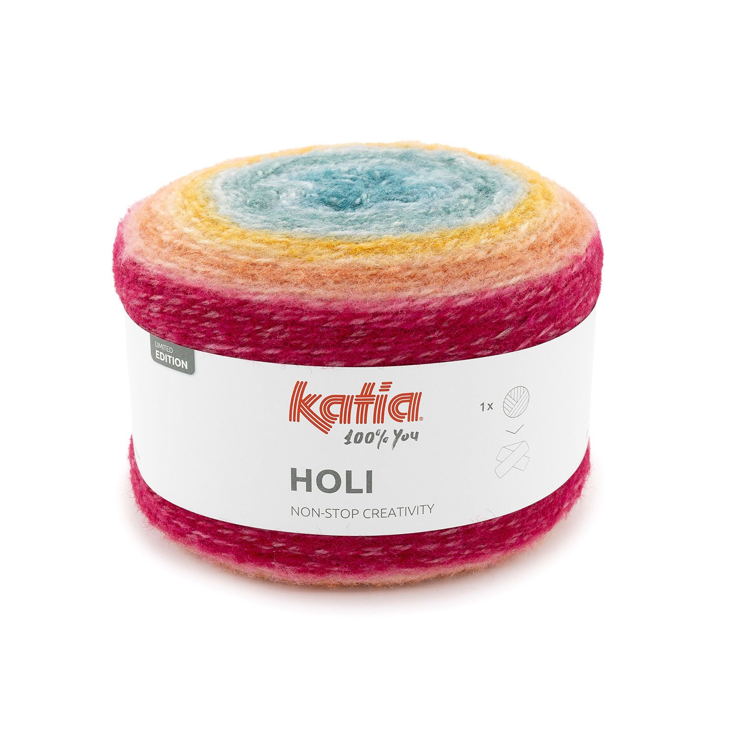 Lass dich begeistern von Katia Holi, einem einzigartigen Garn mit perfektem Farbverlauf, erhältlich in 200 g Cake-Knäueln. Die innovative Mischung aus Wolle, Acryl und Polyamid sorgt für Struktur, Volumen und einen dezenten Plüscheffekt, ganz im aktuellen Trend. Stricke einen Schal oder häkle ein Tuch mit nur einem Knäuel! Wage es, einzigartige und mehrfarbige Designs mit Katia Holi zu kreieren.