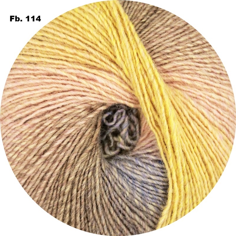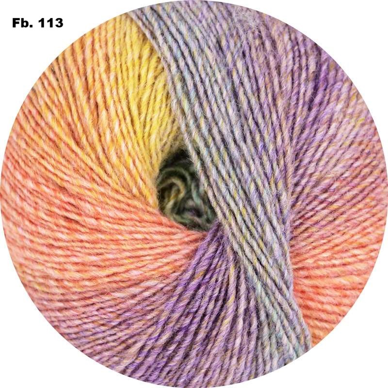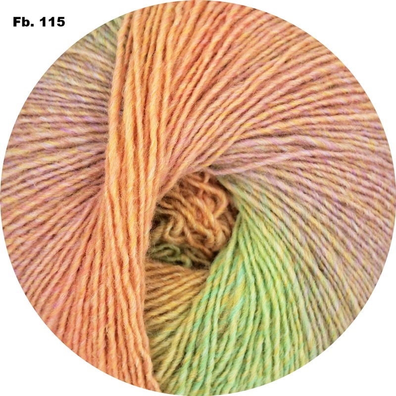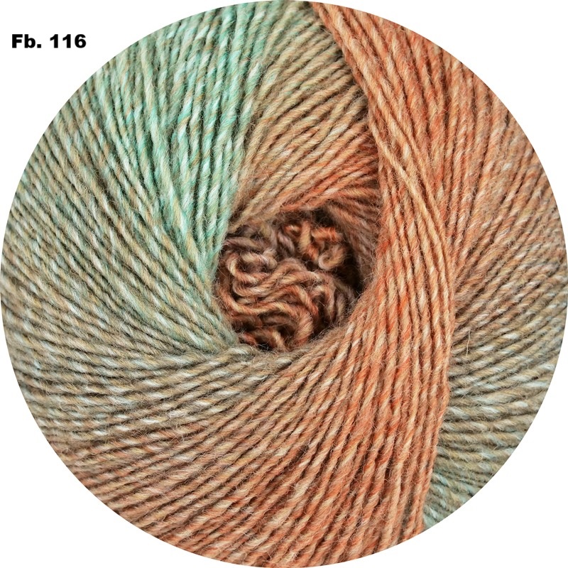 Langrapportgarn mit weichen langen Farbübergängen für leichte Gestricke, in 100g Aufmachung für langes knotenfreies Stricken und wenig Rapportunterbrechnungen, leicht zu stricken und gleichmäßige Maschen
