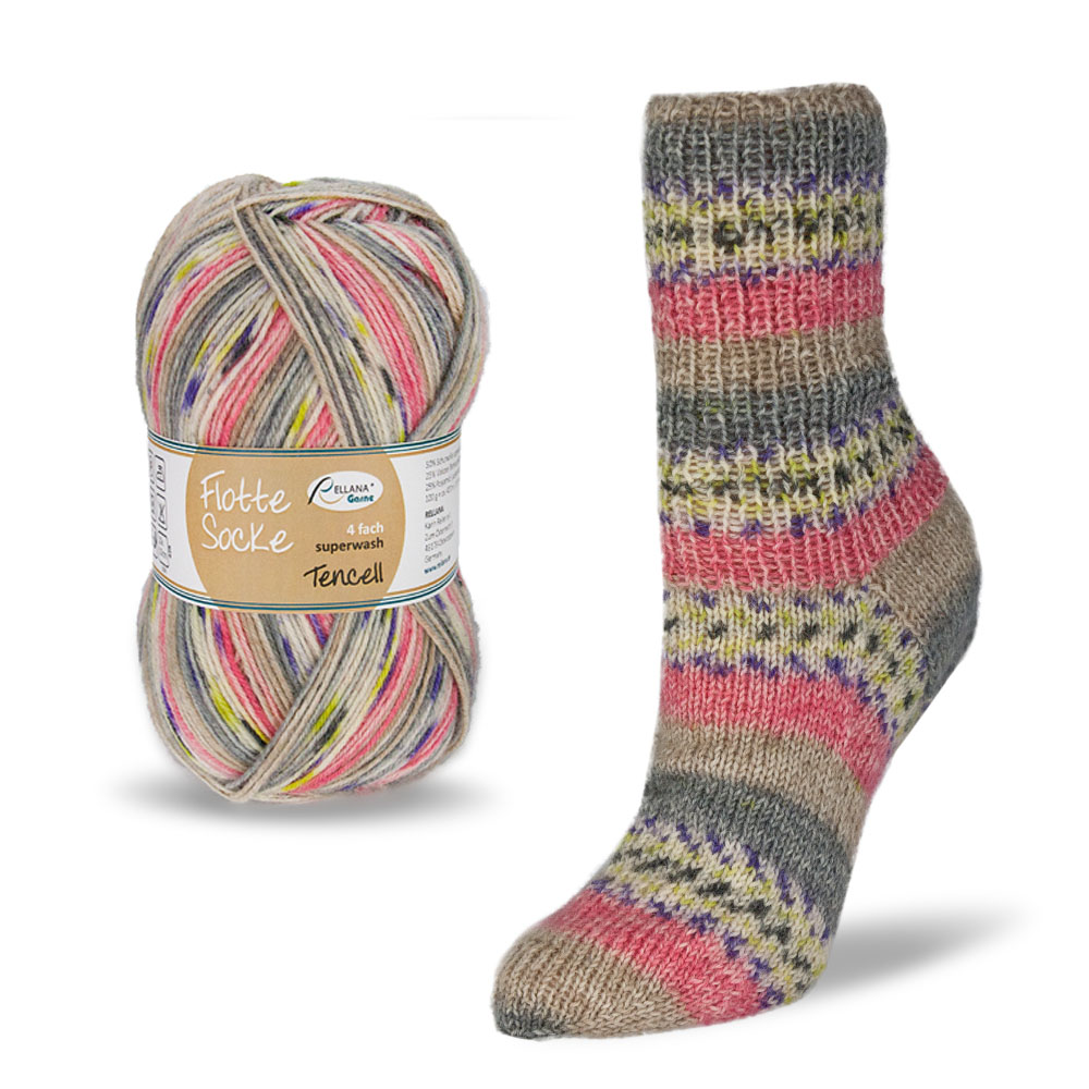 Relana/ Flotte Socke 4f. Tencel 1593 grau-beige-erdbeer-lila-apfel
