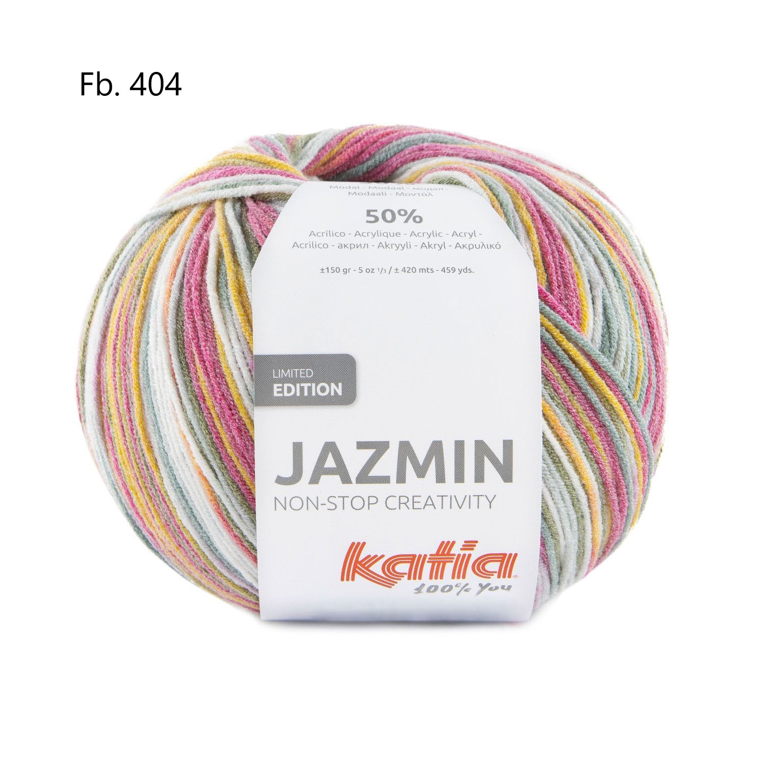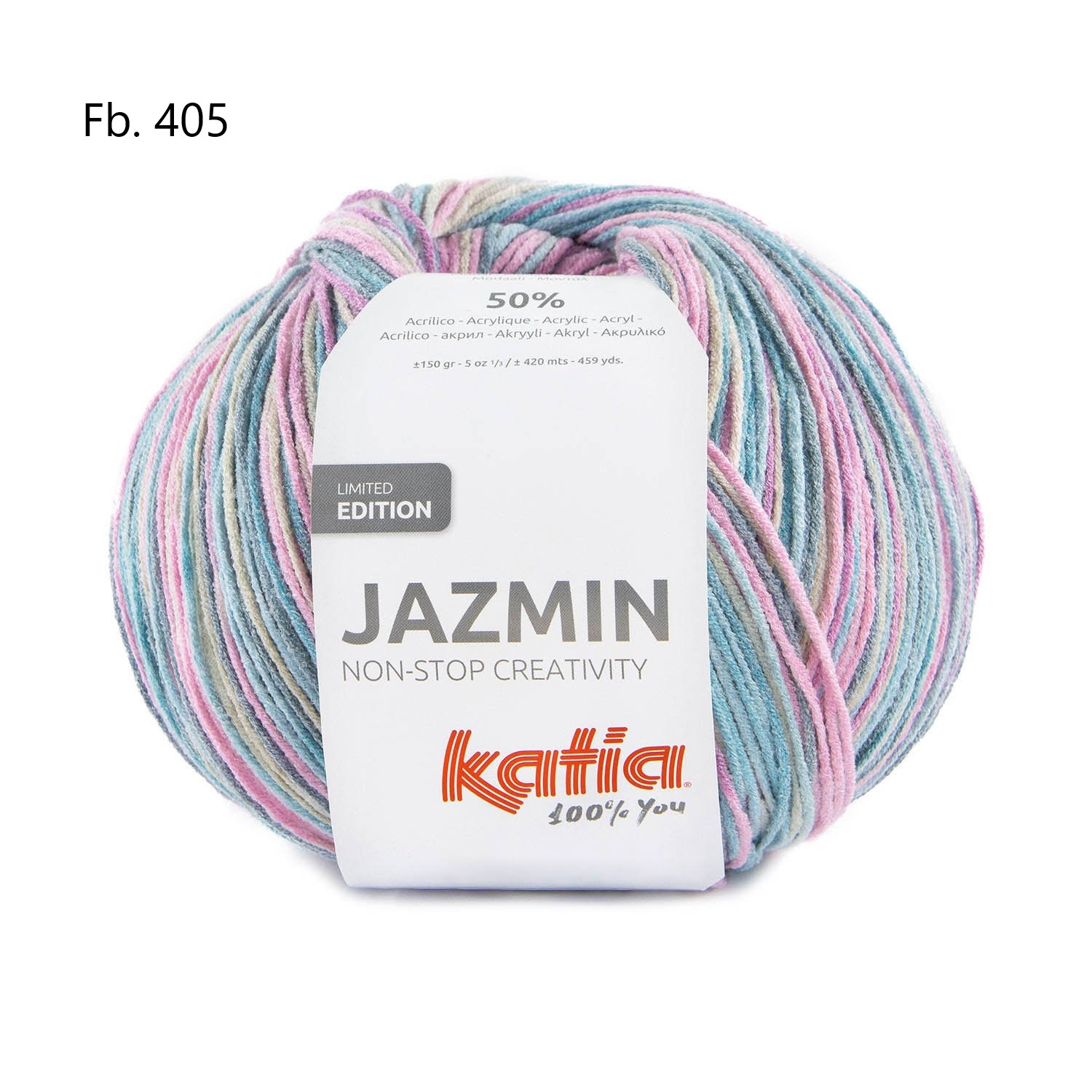 Katia Jazmin ist ein Garn in Limited Edition, das nicht nur durch seine Weichheit, sondern auch durch den Multicolor-Effekt in zarten Pastelltönen begeistert. Die Mischung aus Modal, also Viskose, und synthetischem High-Bulk-Garn gibt ihm einen subtilen Flausch-Effekt. Wenn du Spaß an der Formel „1 Knäuel, 1 Projekt“ hast, ist Katia Jazmin genau das Richtige für dich. Denn du brauchst nur ein Knäuel Katia Jazmin zum Stricken eines schönen Schals für Damen. Mit seinen zarten Farben ist es auch ideal für Babydecken: Lege einfach zwei Knäuel Katia Jazmin bereit und stricke eine süße Babydecke. Erhältlich in Knäulen zu 150 g mit einer Lauflänge von je 420 m. Wir empfehlen Stricknadeln der Stärke 3,5-4 mm bzw. Häkelnadeln der Stärke 3,5-4 mm. Stricke aus nur 2 Knäuel eine Decke. Maschenprobe: 10x10cm = 19 Maschen x 27 Reihen. Maschinenwaschbar bis 30°C, nur kurz schleudern. Nicht trocknergeeignet.