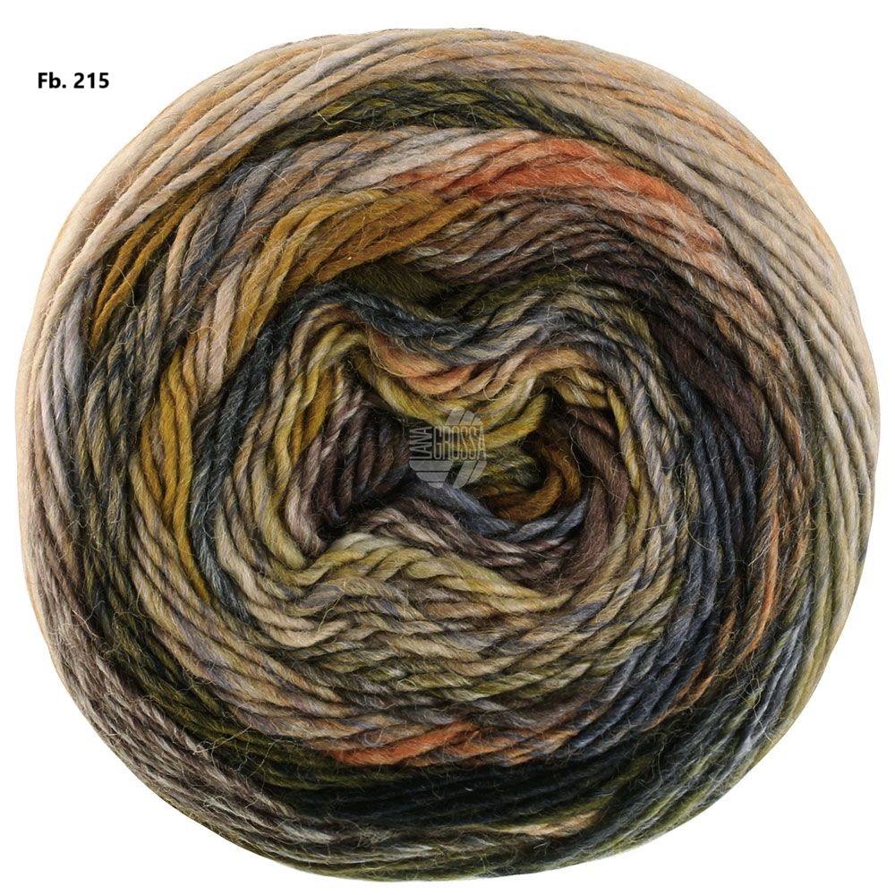 Lana Grossa Colorissimo Fb. 215 Orangebraun/Silber-/Hellgrau/Hellbeige/Blau-/ Stahlgrau/Moos-/Waldgrün