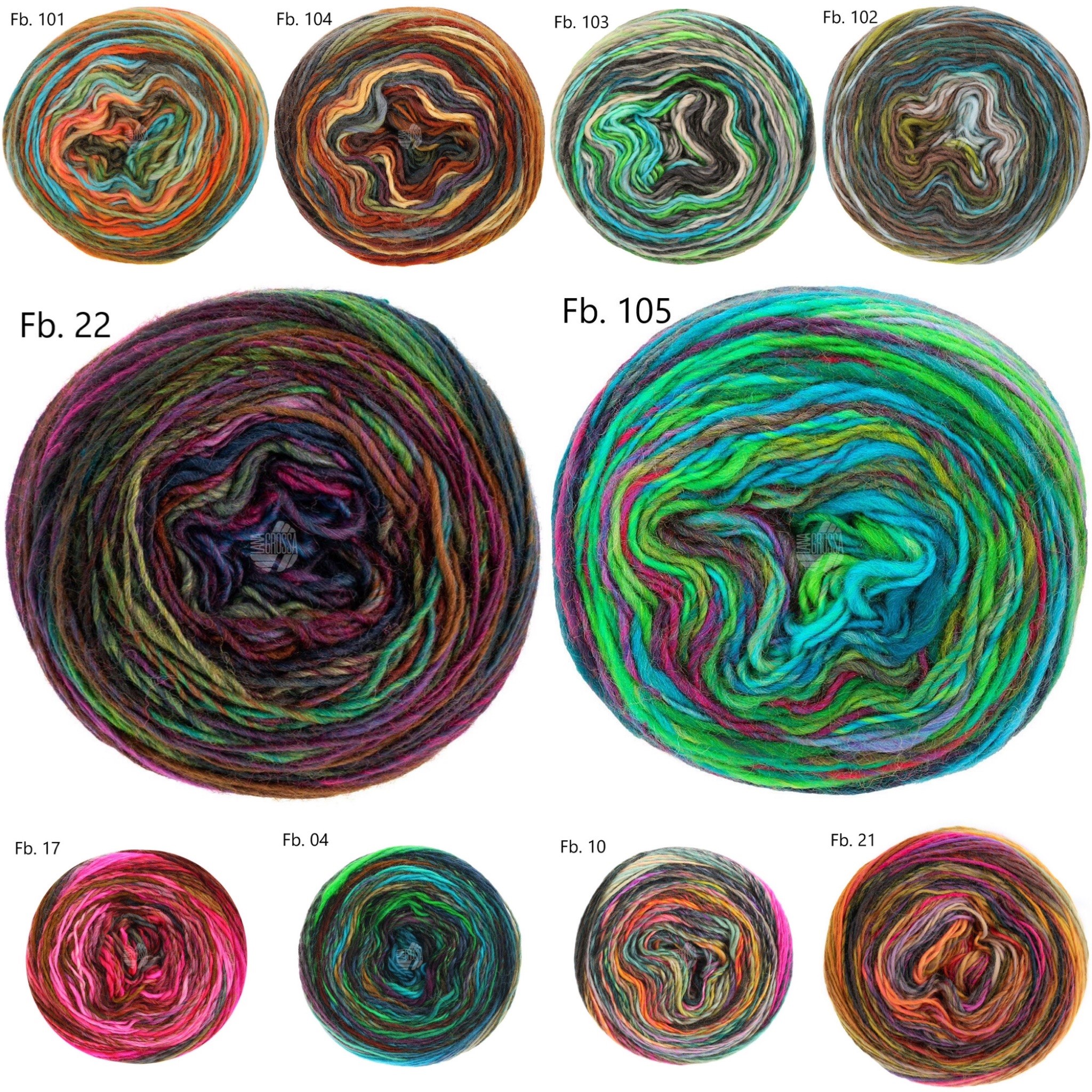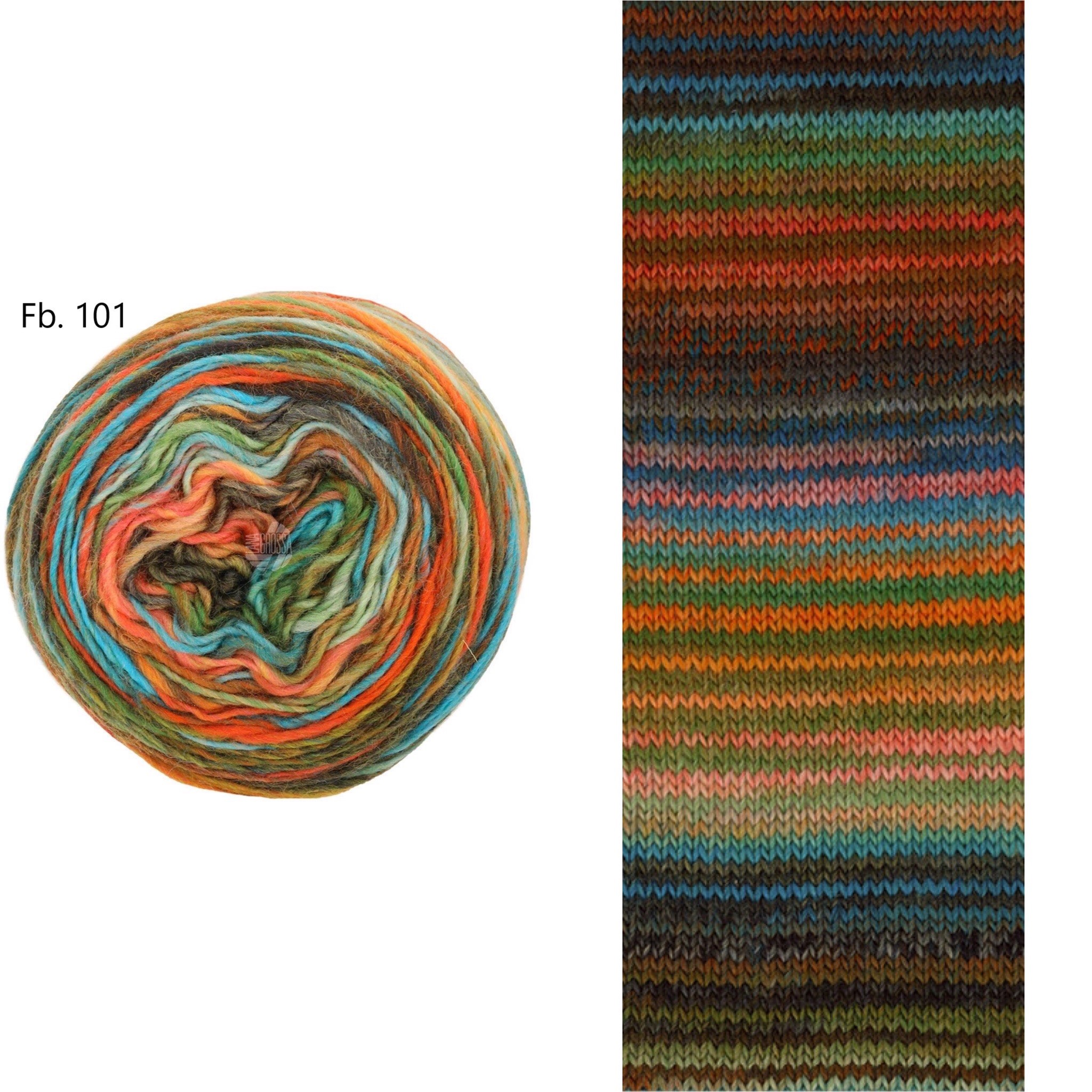 Lana Grossa Colorissimo Fb. 209 Oliv/Türkis/Hellgrün/Petrol/Orange/Schwarzbraun/ Graublau/-grün/Nougat