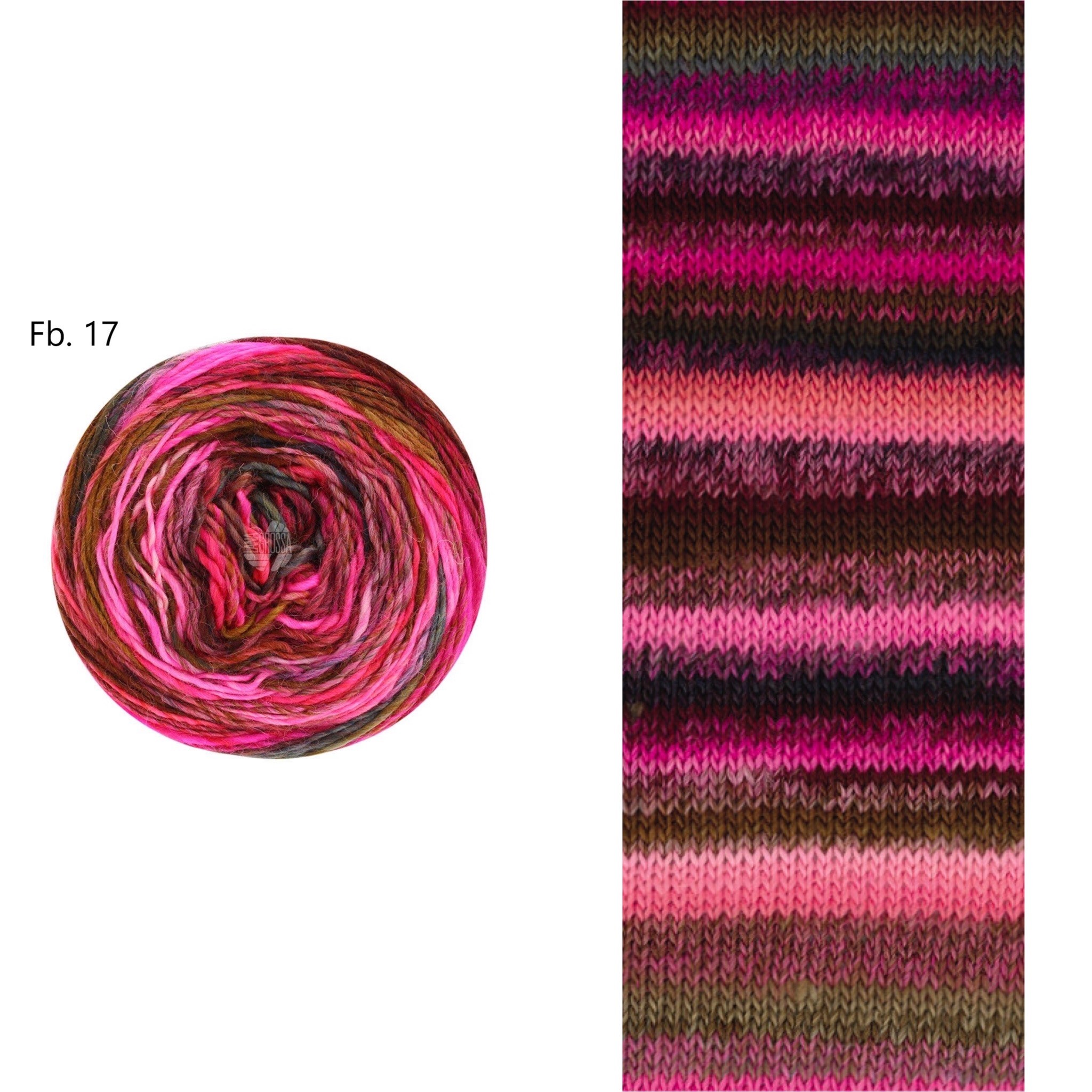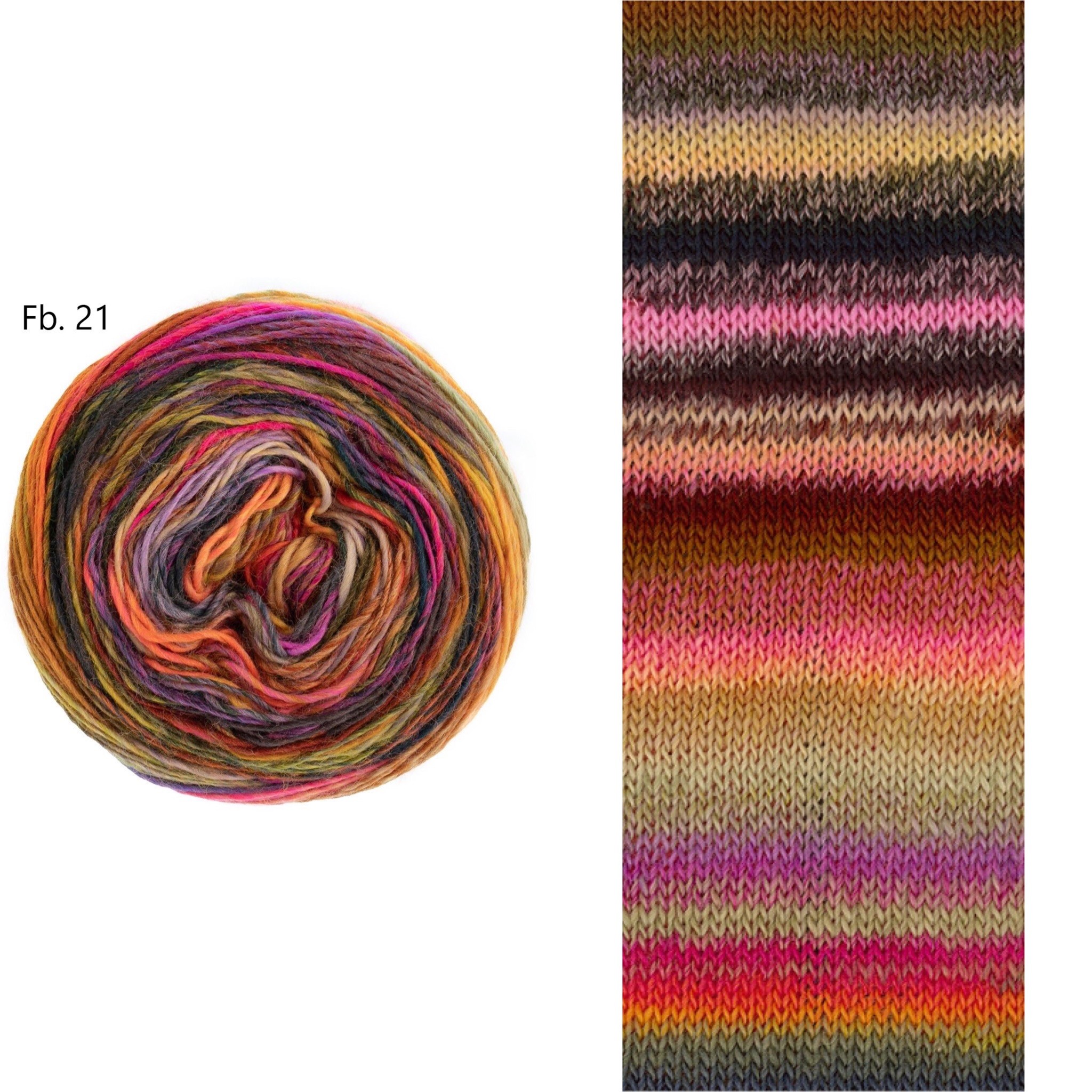 Lana Grossa Colorissimo Fb. 218 Pink/Fuchsia/Dotter-/Graugelb/Orange/Rotbraun/ Graugrün/Schwarzrot