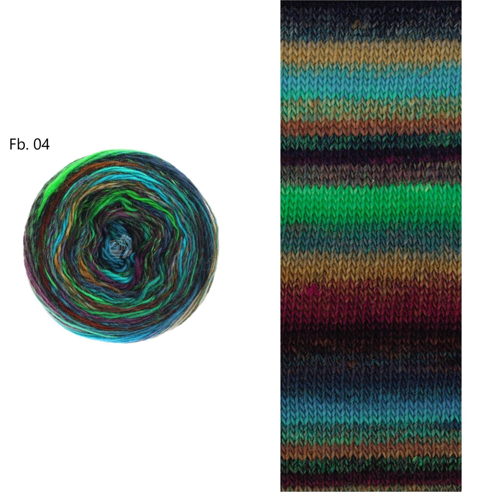 Lana Grossa Colorissimo Fb. 04 Oliv/Türkis/Hellgrün/Petrol/Camel/Aubergine
