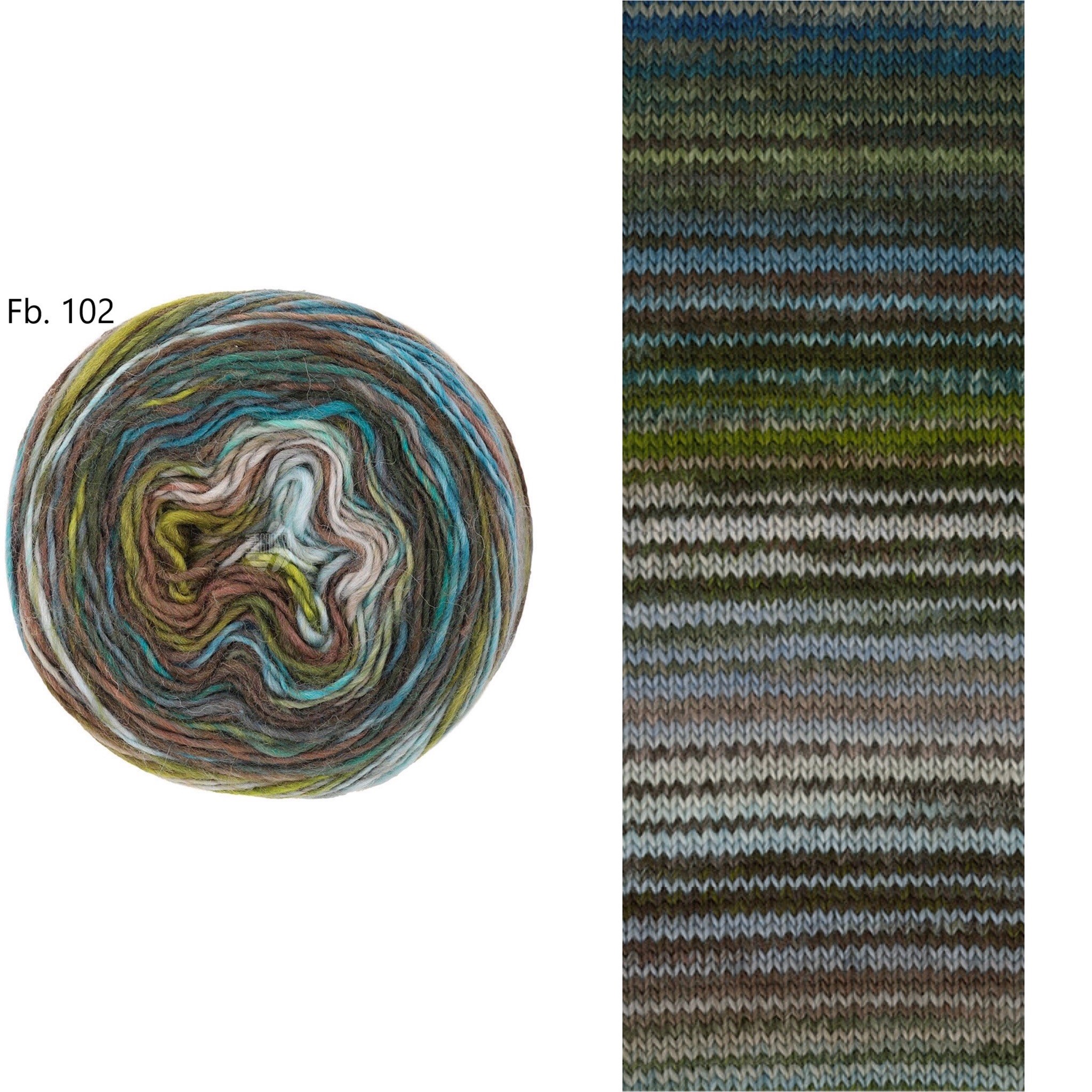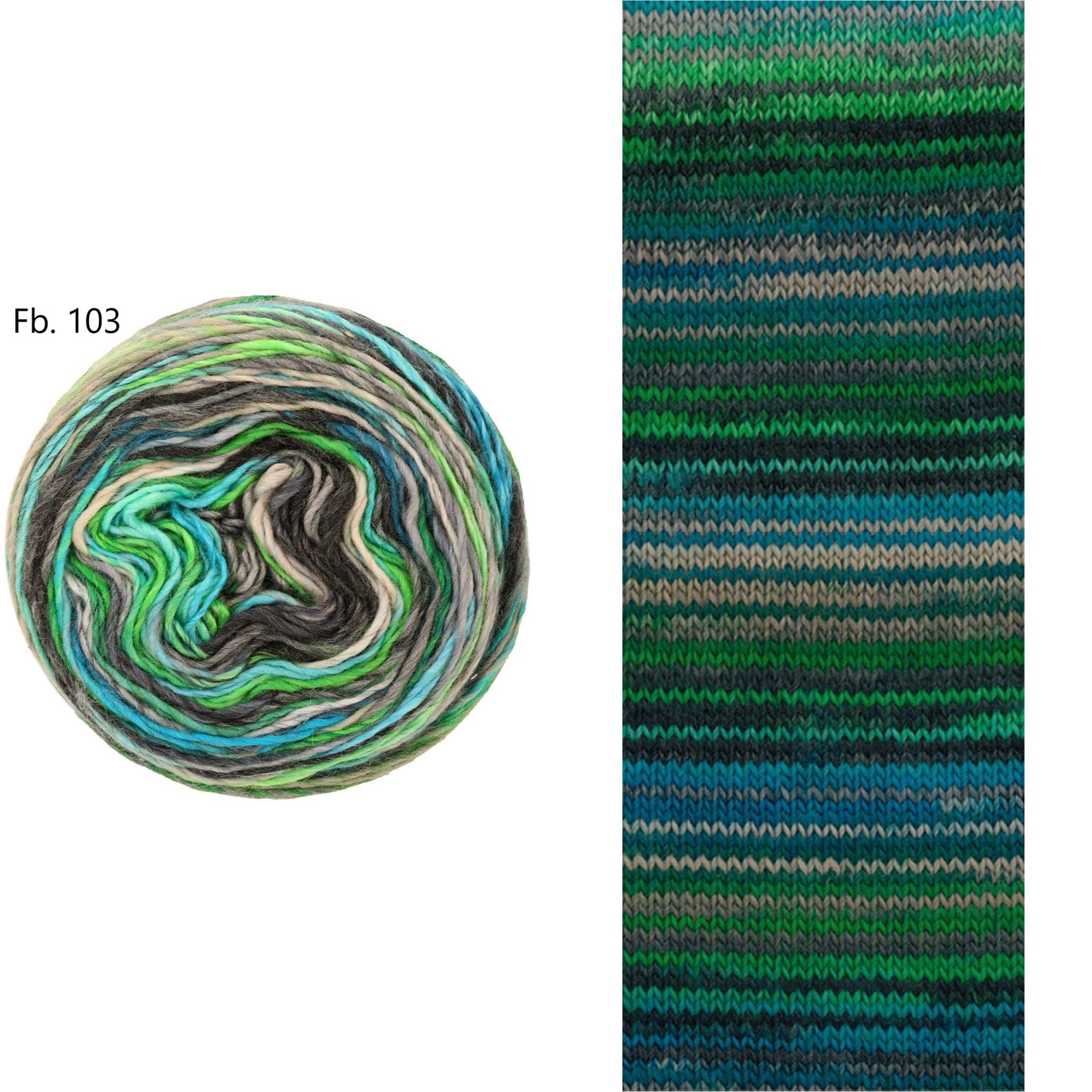 Lana Grossa Colorissimo Fb. 102 Blau/Petrol/Pistazie/Blattgrün/Türkis/Grau