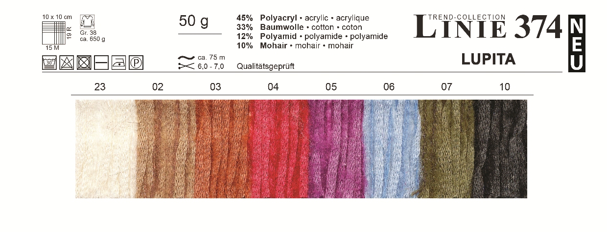 45% Polyacryl, 33% Baumwolle, 12% Polyamid, 10% Mohair